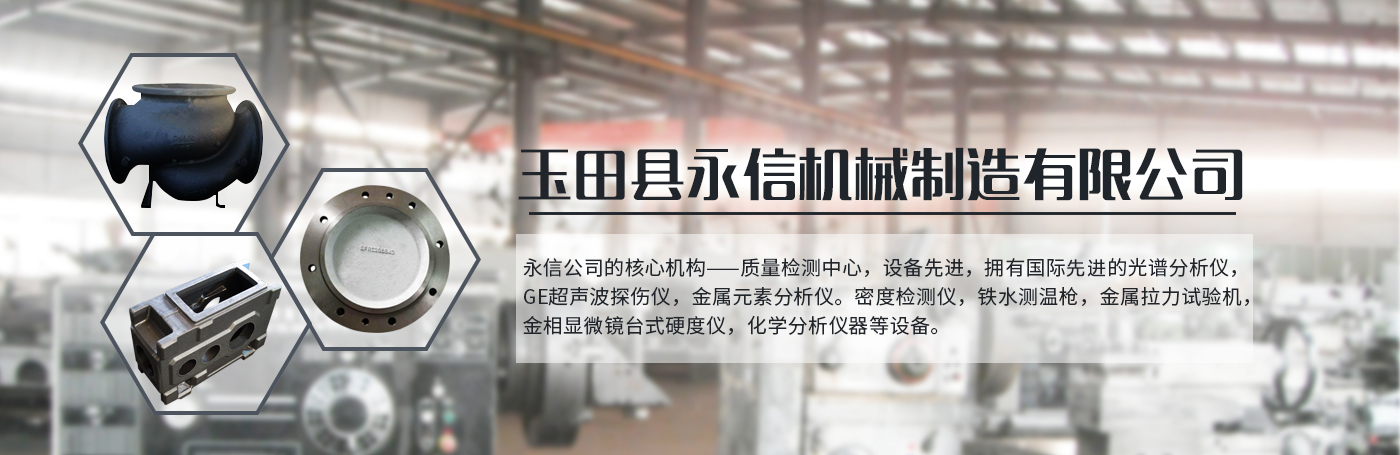 玉田縣永信機(jī)械制造有限公司總公司成立于2009年,是從事工程機(jī)械鑄件, 機(jī)床鑄件 生產(chǎn)和銷售的泵閥鑄件廠家,是國家工信部批準(zhǔn)的鑄造準(zhǔn)入企業(yè)。公司配備全自動(dòng)生產(chǎn)設(shè)備和環(huán)保設(shè) 施,加快綠色發(fā)展。公司以生產(chǎn)工程機(jī)械鑄件、機(jī)床鑄件、耐磨鑄鐵件為主。是擁有自動(dòng)和手工兩條 造型生產(chǎn)線及液壓控制覆膜砂制芯系統(tǒng)的泵閥鑄件廠家。工程機(jī)械鑄件、機(jī)床鑄件等鑄造過程含造型、 電爐熔煉澆鑄、抖箱、噴丸拋光、打磨等工序。生產(chǎn)的工程機(jī)械鑄件、機(jī)床鑄件以批量大、標(biāo)準(zhǔn)高、 誤差小的特點(diǎn)深得用戶信賴。機(jī)械加工車間擁有3套加工中心、15臺(tái)數(shù)控車床及其它加工設(shè)備。永信公 司的核心機(jī)構(gòu)——質(zhì)量檢測中心,擁有光譜分析儀、GE超聲波探傷儀,金屬元素分析…